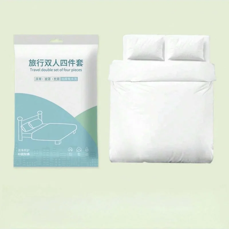 (3 Reviews) 4 Pcs Disposable Bed Sheets King Size, Disposable Fitted Sheets Travel Bedding Cover for Hotel, Disposable Travel Sheet