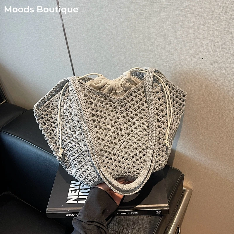 2025 Latest Summer Beach Straw Woven Tote Bag For Women 2-IN-1 Hollow-out Lightweight Large Capacity Shopper Shoulder Bag Female