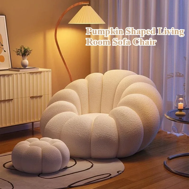 (6 Reviews) Lazy Sofa Pumpkin Nordic Style Single Sofa Chair Not Rotate Soft and Comfortable Small Living Room Balcony Bedroom Sofa Chair