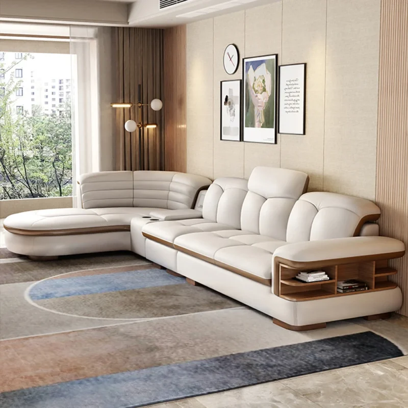 (3 Reviews) MANBAS Top Grain Genuine Leather Sofa with Corner Sectional Modern Italian Leather Couch Big Arc Shape Living Room Sofas Set
