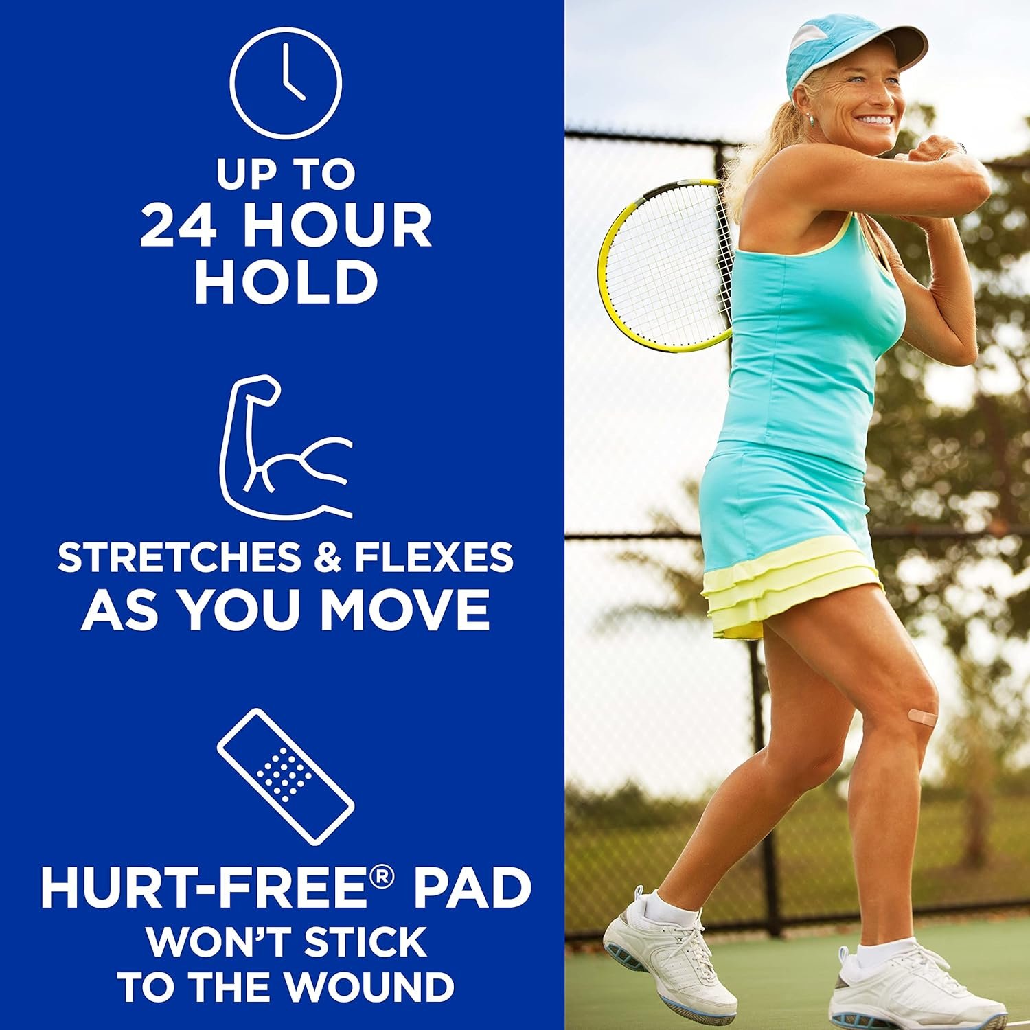 This Band-Aid WILL STAY ON. It also has a gigantic pad, which I like, but FYI this is not the size for,say, wrapping around a finger, unless you are the size of Andre the Giant or Shaq.
