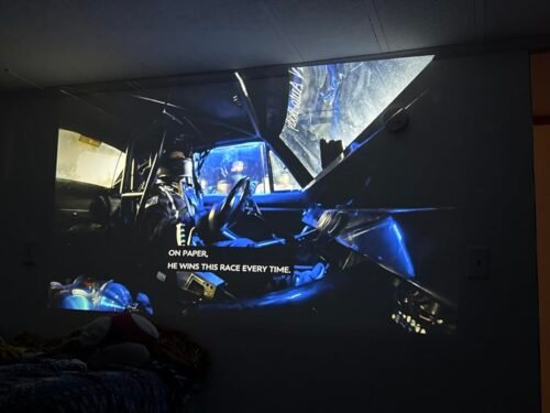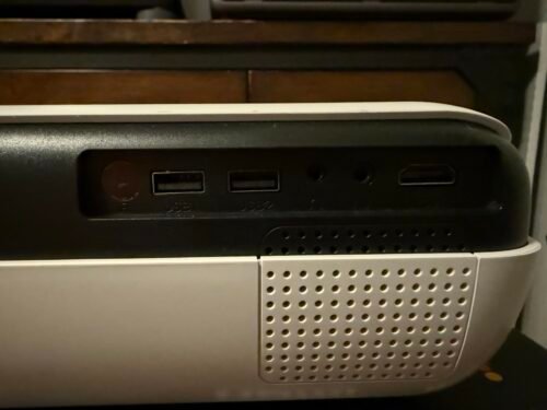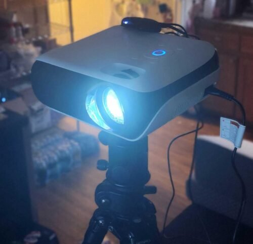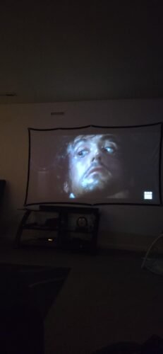 I’m rating this five stars because of how much I’ve used it and how much I’ve enjoyed it. It is not perfect, dead pixels are starting to show up here and there and burn in is culminating in the middle (noticeable in darker pictures), but 6 months since I’ve bought this and I am so so so happy with it, I use it literally everyday and there has been days where it’s been left on and keeps on churning. (The picture is square aspect ratio so doesn’t really show the wideness) but this thing blows up huge. Pros, totally affordable and saved me 100s of dollars in going to theater, last time I went to the theater the screen looked tiny. Fan blows quietly you wouldn’t even know it was there. Clear image about 85 percent clarity and sharpness in the image but when the movies playing any tiny details aren’t even noticeable. Bluetooth function is very helpful. Menu is simple to understand. Light weight just pop it on a camera stand is what I did. Portable, though not battery powered I can through it in a bag easy and setup anywhere. Good construction. All around I’ve been super happy with it.