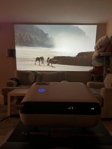 For the time ever getting a projector I would say it fantastic for watching tv and movies. Love the fact that it google tv projector. Made it easier going from a google Chromecast. Enjoying the bigger picture and quality. Also enjoy the bluetooth connectivity because the speaker are great but with a soundbar its better. Very quiet and light. Also easy to set up. Definitely recommend getting the screen with it. Great picture quality on the wall but get better with screen. Mount on the wall now just keeps getting better and better
