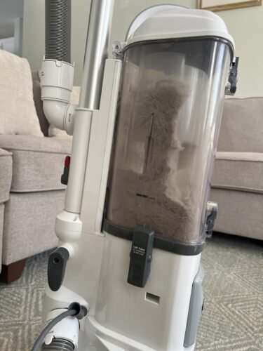 First, I will address the benefits. Right off the bat, this model is outstanding when it comes to filtering out the dust that almost all vacuums spit back out when in use. All vacuums have filters, but this goes above and beyond. If you have health issues regarding your lungs or breathing, look no further. This vacuum is completely self contained inside and does not spit any of the dust or dirt back out (see attached photos) as almost all vacuums do. Keep in mind this vacuum was completely dust free and white when I bought it (as it should be) and by the time I was finished, you would have thought I just cleaned up after a construction build. It makes me sick to think I had that much dust on my carpets, which brings me to my next point. The suction power is outstanding as well. It will take whatever you are willing to throw its way, on wood floors as well as carpet. It comes with three attachments (wand, duster and small roller vacuum for stairs). The canister detaches and is pretty lightweight. It picked up so much dust, dirt, pet hair, etc (I have two short hair, Jack Russell Terriers that are big shedders) that I had to empty the canister several (at least 6 times) while vacuuming my entire house. I recommend checking the canister to make sure it does not get too full (user error issues), or it becomes ineffective after that. Something else to note, empty the vacuum from the bottom. It opens on the top and the bottom. The bottom is an easier way to drop all the dust and collected contents.