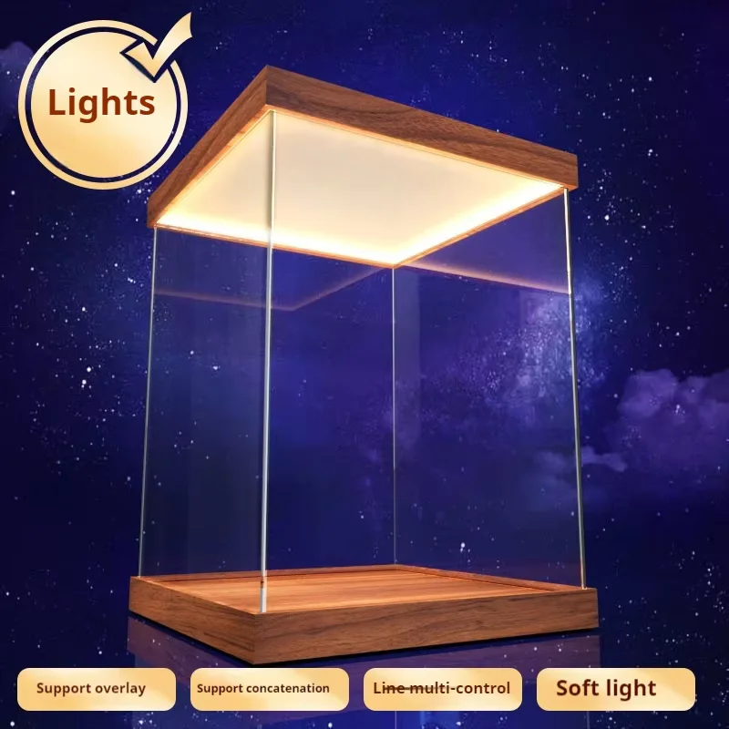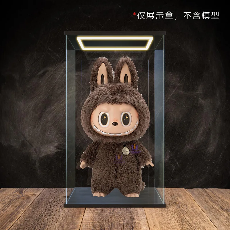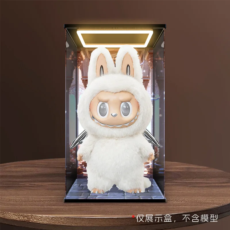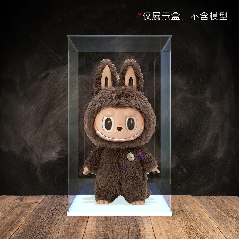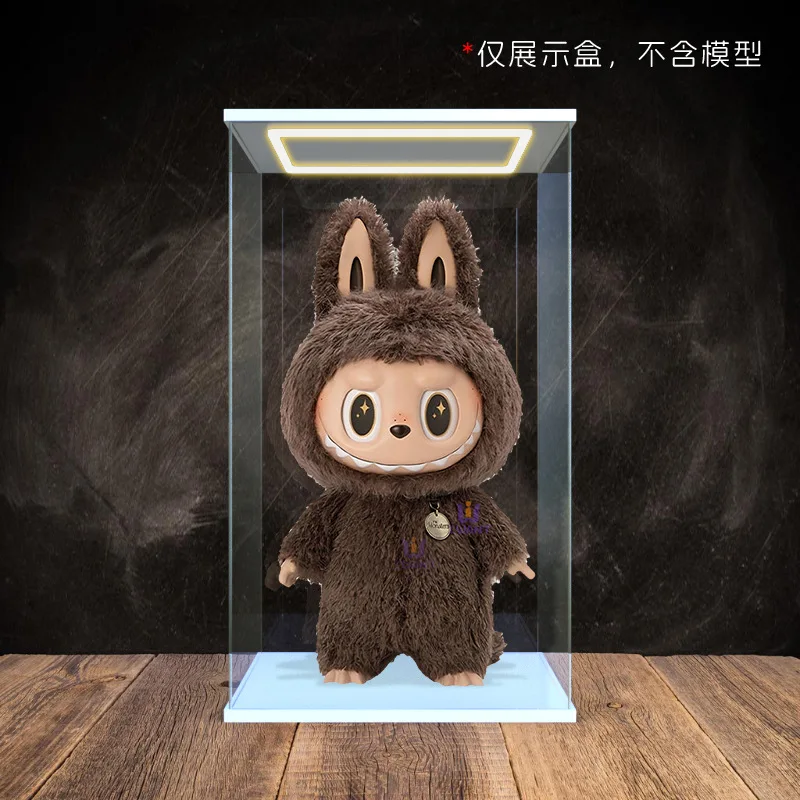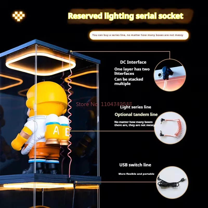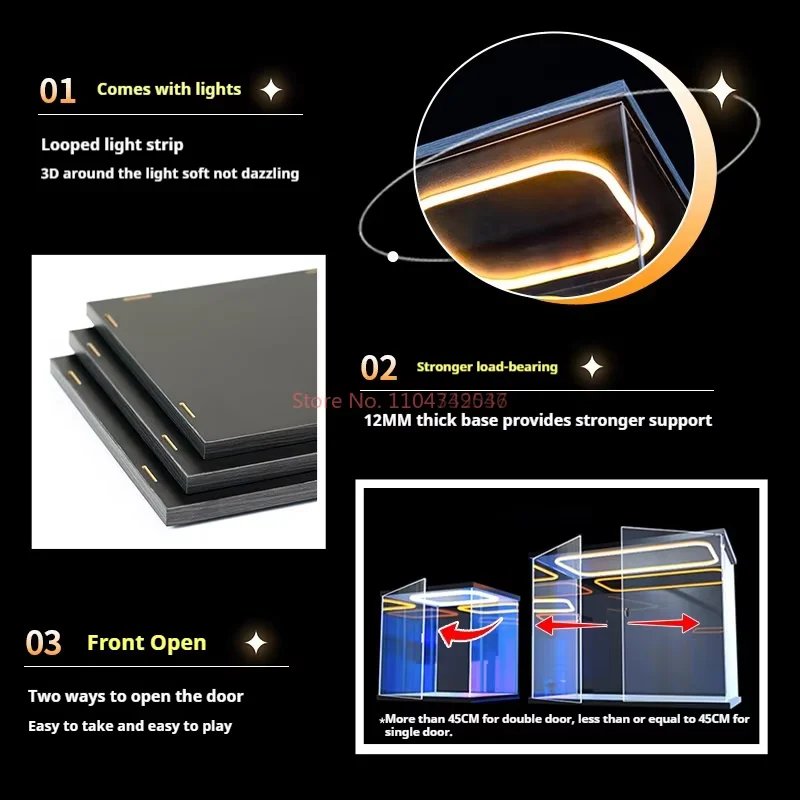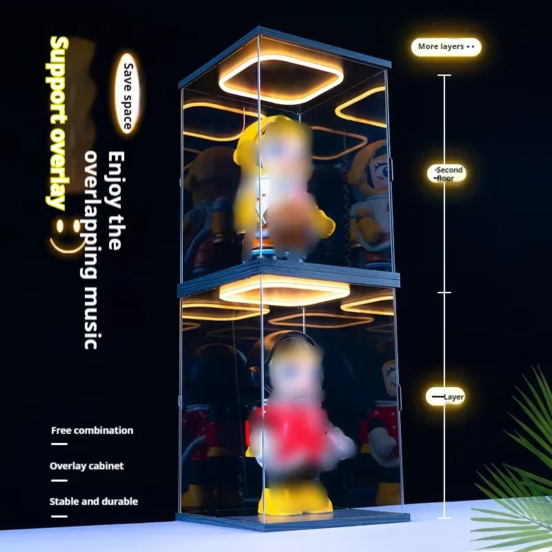 Transparent Acrylic Box Ring Led Lights Dust Cover Box Cartoon Figure Display Car Model Storage Box Collections Model Showcase