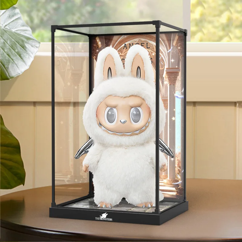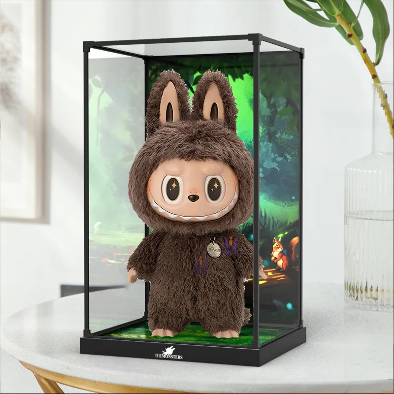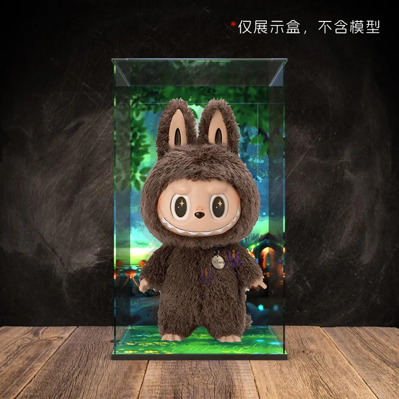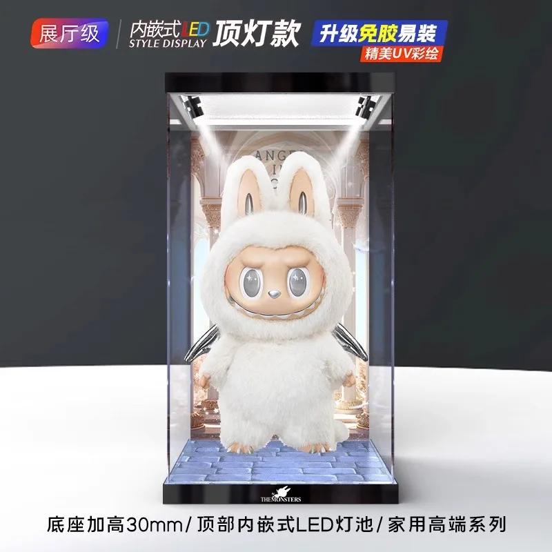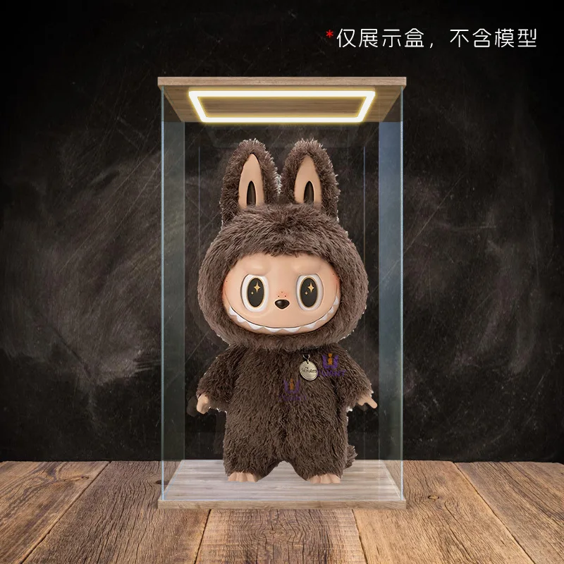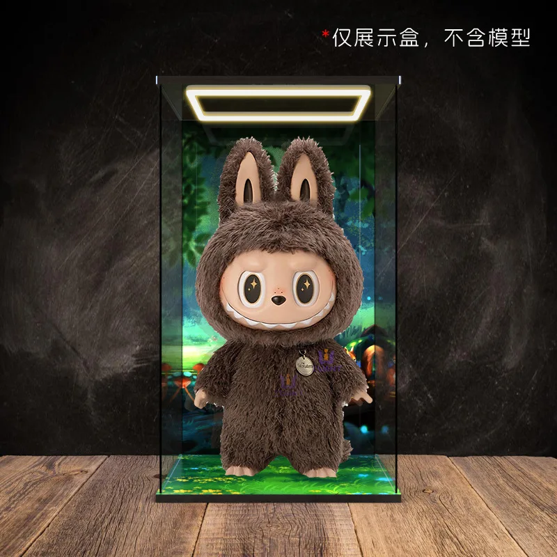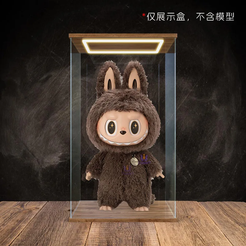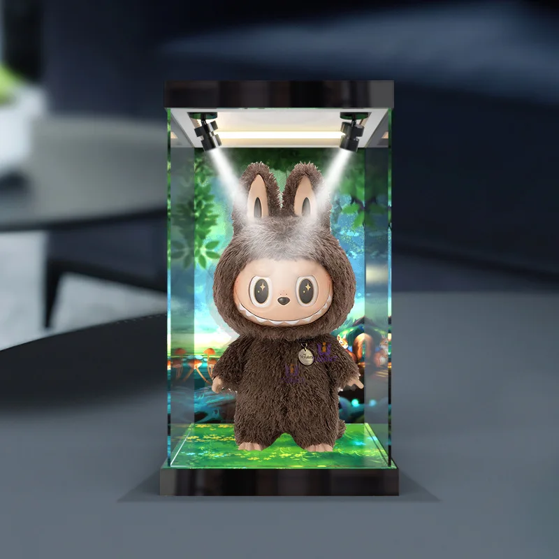 Transparent Acrylic Box Ring Led Lights Dust Cover Box Cartoon Figure Display Car Model Storage Box Collections Model Showcase